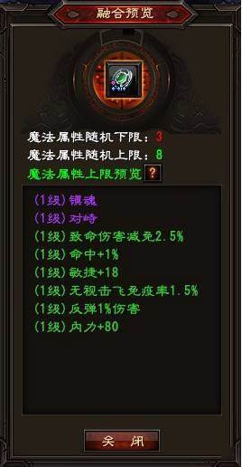 4)融合之后护心镜的魔法属性会在融合前两护心镜的魔法属性中随机生成,并保留属性的等级。
