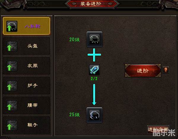 获得低级紫装后,玩家升级以后就不用每次都购买新的紫装,只需要补足差价即可兑换更高一级的装备,这就称之为装备进阶。