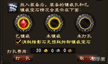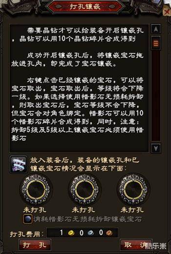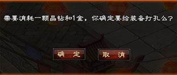 2.点击“打孔”按钮(背包中需要有晶钻),会提示需要消耗的金钱和物品,点击确认,就打孔成功了: