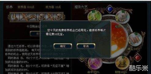 玩家每天有10次修养的机会,前五次玩家可免费修养,后5次每次修养需消耗10元宝。玩家通过修养可以获得修养值和修为值。