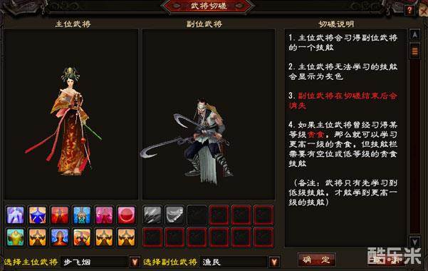 6.切蹉时,若主位武将没有技能空格或没有1级技能,若要切磋一个新的1级技能,则不可以进行切磋。
