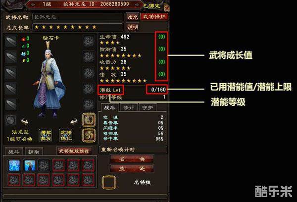 武将潜能会影响到武将可增加属性的多少。玩家可以通过给武将喂食成长石来让增强武将的属性,下面给大家介绍一下武将面板上关于潜能的功能吧。