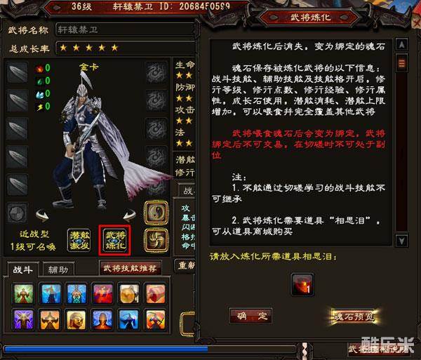 3.名将不可被喂食相思泪,即名将不可被炼化为魂石。