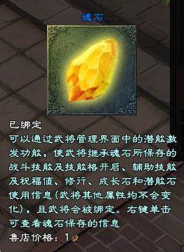 1.武将炼化为魂石时(即武将A),将保留武将的战斗技能和战斗技能格(空白但已开启的战斗技能格也将保留),辅助技能,已使用的潜能点(包括潜能点所增加的属性),潜能上限和潜能等级。