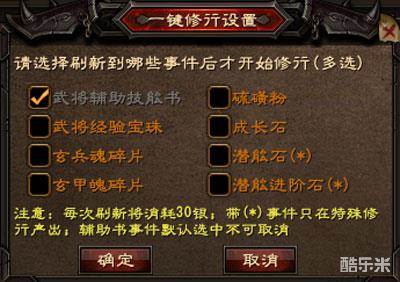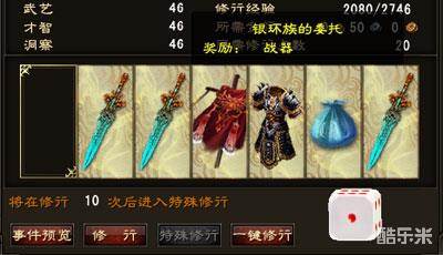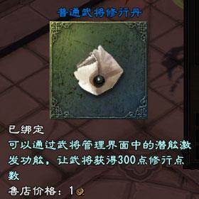 当武将拥有修行点时,玩家可以在武将修行大师处进行修行,修行将获得战器、法宝、终极成长石、潜能进阶石、潜能成长石、月光宝盒等修行独有物品。