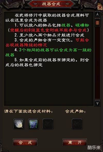 玩家可以用修行获得的单属性战器来合成多属性战器。战器的合成规则如下: