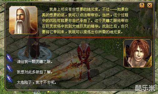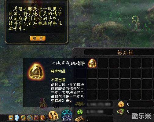 | 任务关键道具 | 名称:灵瞳之眼 说明:这颗诡异的眼球流淌着奇异的魔力,它将帮你在巨灵坟场找到大地巨灵的精华。点击右键使用。 名称:大地巨灵的精华 说明:这颗大地巨灵的精华蕴藏着最为纯粹的地元素,灰袍法师弗兰迪将帮你把地元素从中提取出来。 |