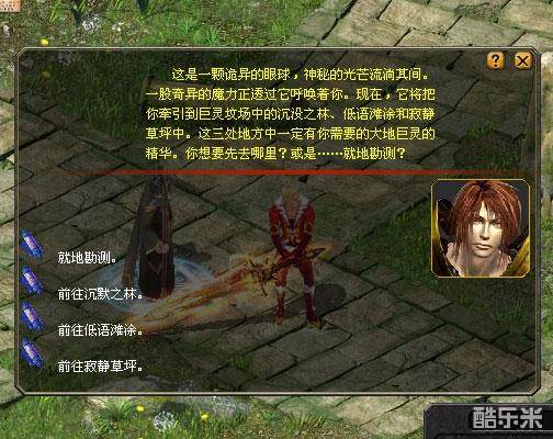 做好准备之后,弗兰迪将给你一个神秘的灵瞳之眼,它将帮你找到大地巨灵的所在。巨灵坟场分为沉没之林、低语滩涂、寂静草坪这三个部分,但你只可能在其中的一个区域找到大地巨灵的精华。