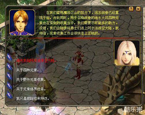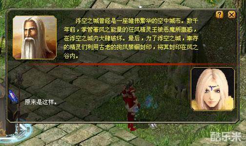 到达阿尔法浮空大陆之后你很容易地就能找到灰袍法师弗兰迪。他告诉你,在浮空大陆的东部有一片被称为风之谷的区域,如果你想从他手中获得风元素,就要前往风之谷使用破魔密卷帮他解开5个禁锢封印。