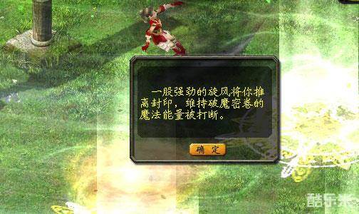 当然,作为能够封印狂风精灵王的强大力量,禁锢封印也并不是每个都能如此顺利地解开。那隐藏在禁锢封印之下的能量偶尔会化作飓风,趁你使用破魔密卷时将你卷向空中,并持续保护禁锢封印,使你在一小段时间内无法接近。