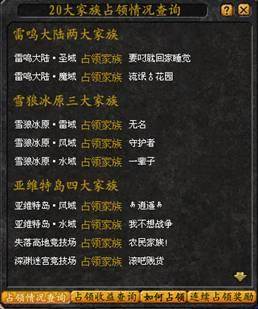 玩家可以通过市场中的王国家族统领官·扎卡德(308,443),查看目前20大占领家族是哪些家族