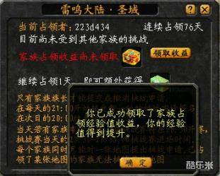 当家族每占领一回合,家族成员就可以领取到一定的升级经验值,家族成员的等级越高,领取到的经验值也就越多。