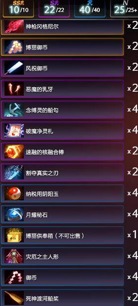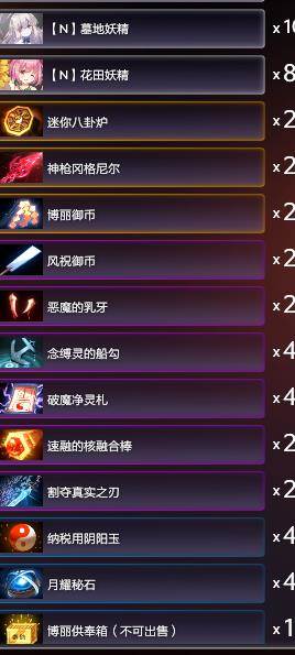 2张SSR御币,增加抽到大妖精和其他SSR概率 。其实就是两个大妖精的位置代替了4杖SSR装备的需求,而且抽到角色的概率是要比抽到装备大很多的。