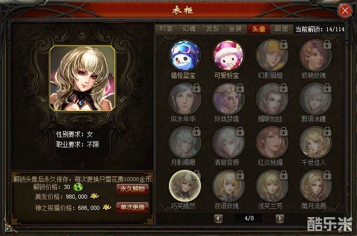 在头像界面,我们可以花费一定数量的魔石解锁心仪的头像。这样一来,将来我们想要头像时,只需在该界面花费少量金币,即可将头像换成之前解锁的任何一个头像。