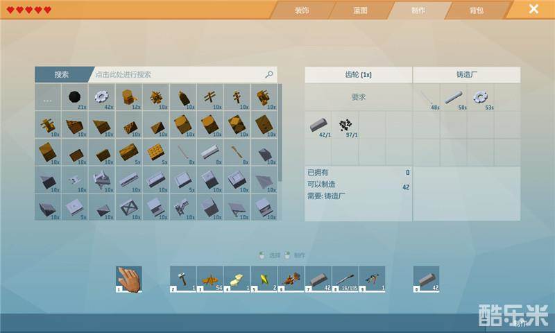 制作一把左轮手枪所需材料:x2钢管、x1钢杆、x1齿轮、x1木板