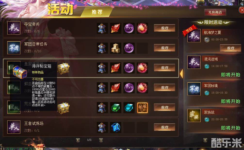 活动期间,完成日常活动任务还可领取海洋秘宝箱,内含船舰材料箱等丰厚好礼,千万不要错过哦!