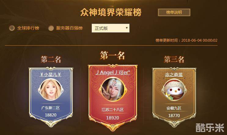 原本以为大神都是遥不可及的,但是通过>>>众神境界荣耀榜<<<,小记发现,原来大神就在我身边!因为今天的被访大神和小记是一个区的,而且是好友哦!现在小记就带大家走近这个喜欢爵位、喜欢好看的外套和光效,全球神火榜第二,不输须眉的红妆巾帼的魔域世界!