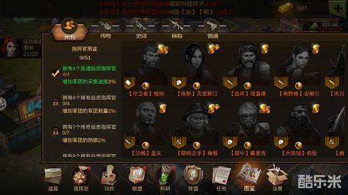 《末日世界》图鉴系统能为玩家带来属性加成,收集指定品质的指挥官,就能激活图鉴系统的加成效果。举个例子,拥有4个普通品质指挥官,就能增加2%的军团采集速度。