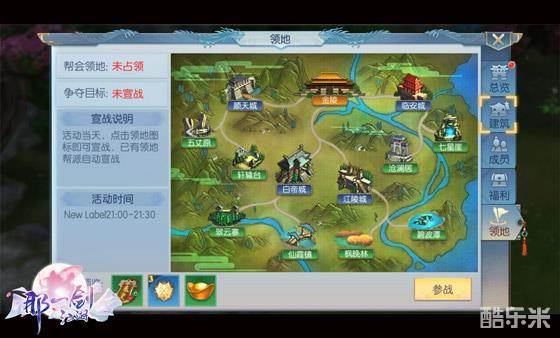 金陵、白帝、临安等13大城镇作为可攻占城池,又分为“村寨”、“城镇” 和“主城”三个级别,占领越高级领地产出资源越丰富,主城金陵自然就会成为各大帮派的必争之地了。游戏中玩家通过击毁地图龙柱占领城池,之后如果要进攻下一个领地也只能按照地图路线进攻。