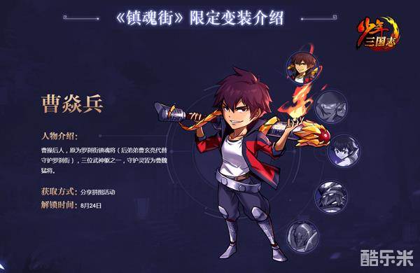 同时,《少年三国志》IP联动的绝版限定变装也在该专题页中首次曝光。本次联动变装一共推出了“曹焱兵”、“曹玄亮”、“典韦”、“于禁”、“许褚”五位人气角色的限定变装。玩家只需要通过参与游戏内分享拼图活动、剧情副本、铸神像活动等方式即可免费赢取。