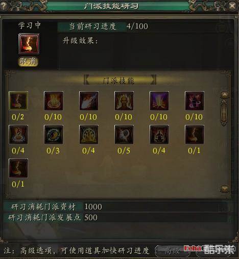 门派技能研究开啟