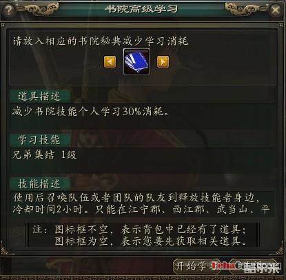 如以「高级」模式学习,则需要消耗商城的「书院秘典」,使用后消耗减少30%。