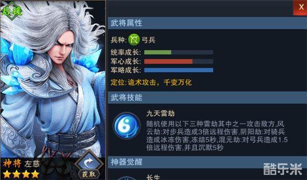 在新出的三大神将中,有一个比较特别的存在,就是司马懿的老师左慈,这位新神将的登场,给司马懿的地位带来了极大的挑战。同样是大屏AOE伤害,相比于司马懿的单一攻击模式,左慈有几率触发更高的伤害,并且还能触发控制效果,并且还自带伤害减免,可以说是十分恐怖了。