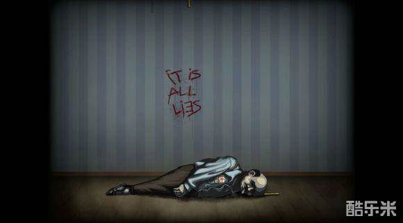 墙上文字为“这全都是谎言”,或许暗喻主角正身在梦中?