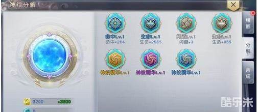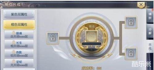 5、通天塔攀上一定层数后可开启神纹合成秘方,可将两个不同属性的神纹按照秘方合成成双属性神纹。双属性神纹同时具有被合成的两种神纹的属性,且每一项属性的数值都高于合成前。