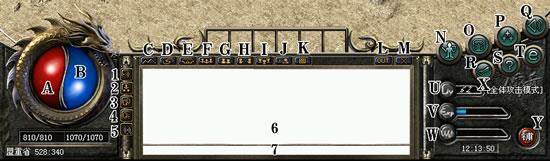 B : 魔法值显示(下面的数字为具体数值,战士在个人等级28级前不显示这项功能)