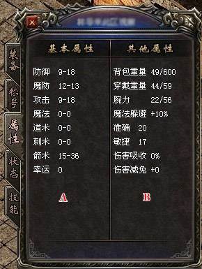 对于您每次拖动不同的物品装配到您的身上,由于您负重的增加,将根据您职业的不同,而对您各种行动有所影响。比如您如果是战士,而使用重型盔甲的话,你的移动速度将有所下降,而如果你是魔法师或者道士,轻型盔甲的使用也将带来这种后果。