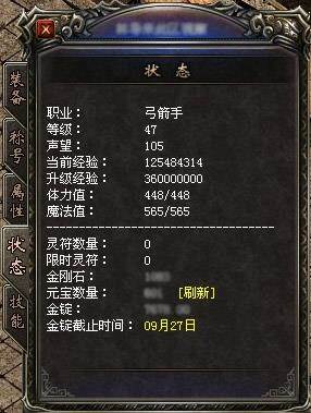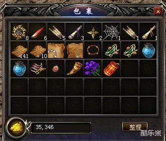 这里显示您当前的金币持有数目,将鼠标指针移动到包裹内的物品上,可显示物品的属性。