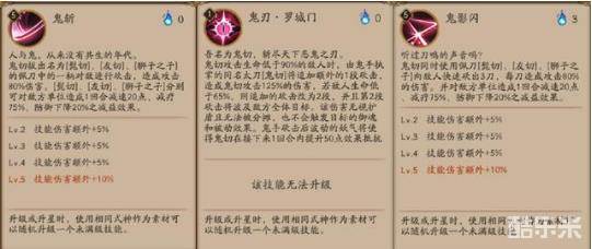 那么咱们来看看技能,一技能普攻:自带特殊效果,能在一定的程度上削弱敌人的能力。对比某些式神的一技能无脑普攻来说算是很有亮点的了;二技能被动:鬼切在攻击生命值较低的敌人时,造成额外追加伤害,切追加的伤害可以无视护盾,也无法被类似于椒图这样的式神进行平摊伤害,同时还有一个特点就是不触发御魂被动。(简直是福利,完全可以不怕静姬了),整体上来看鬼切的被动技能是真的很强啊。这么强力的被动自然也怕封印类的式神啦,因此鬼切还自带了追加伤害后提升自身50%的效果抵抗,能在一定程度上减轻被封的风险;三技能满级基础伤害为100%,整体上的伤害为300%,并对敌人造成特殊的减益效果,输出能力结合被动完完全全就是爆炸伤害。