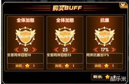 挑战一定层数后,可以通过消费星级数,购买加成BUFF,让挑战战队更强力!