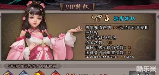 充值980元宝可以享受VIP3特权,那么VIP3特权有哪些呢,VIP3礼包是什么呢。下面和小编一起来了解一下吧。