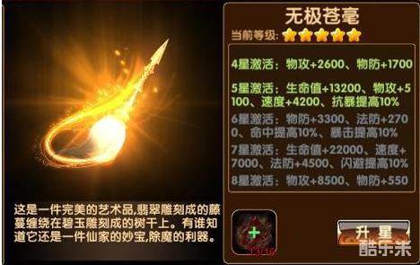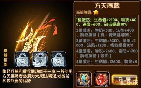 招募稀有橙色武将可以开启专属神器,升星专属神器可获得专属神器技能加成!