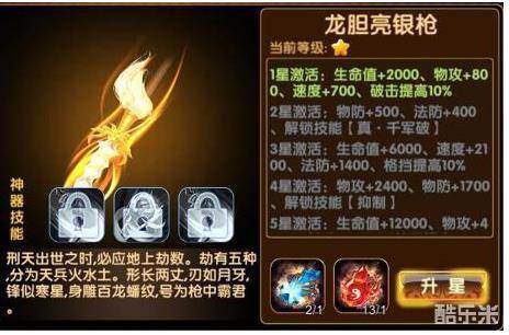 《千年杀》游戏中等级达到25级解锁神器系统,升星升级将获得大量的属性加成。升星所需材料可以通过天降神器抽取、深渊商店兑换、抢山寨活动获取。