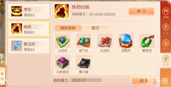 2. 银币优先升级生活技能,烹饪、炼药、打符先选一样主要的升级,不要心疼这点投资,生活技能跟上去以后做东西卖很快就会赚回来。