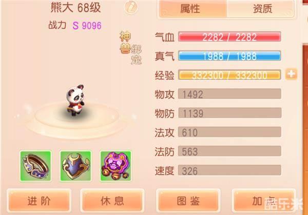 5. 宠物选择,前期不要浪费精力在宠物上,首冲送神兽阿宝应该完全够用到60级(不知挖图珍兽看运气不要强求,60级以后可以根据金光吼的技能再选择一只群攻宝宝或者禁疗法宠九尾宝宝,如果这时候手上的洗髓丹多的话可以试着将这俩宝宝洗成变异,毕竟资质会好很多,说不定技能还会给你惊喜