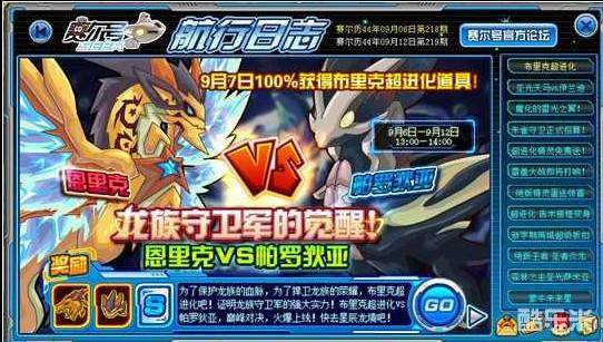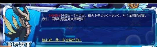 来到星辰龙境,进入一段剧情动画。动画结束后,帕罗狄亚告诉我们,9月6日-9月12日每天下午13:00-14:00,在星辰龙境进行布里克超进化活动!大家要注意时间,记得来参加哦~