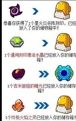 40米币消费成功,获得吉米丽娅精元、超进化道具“终极火焰之灵”、星火炎杀阵刻印和通用刻印水晶。