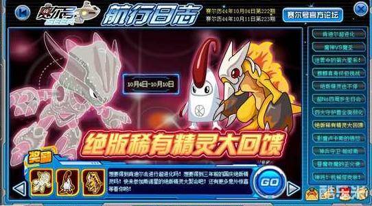 点击左上角的航行日志,选择“绝版稀有精灵大回馈”,GO!