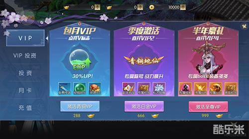 开通VIP4能获得“混元道者”称呼,战力提升10000,并且还有专属的BUFF。最关键是开通VIP4后很多副本的次数会增加,获得材料提战的速度更快。当到达VIP5后还会开启新的宝石孔,从而大幅提高战斗力。