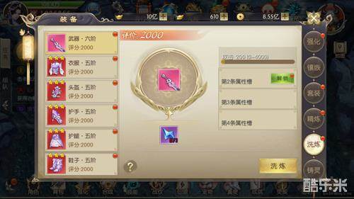 玩家270级后解锁洗炼功能。每个装备都可免费洗炼一条属性槽,花费100绑元可开启一条新的洗炼槽(最多4条),花费【洗炼石】可提升所有属性槽内属性,与强化一样,洗炼的属性在更换装备后依然继承。