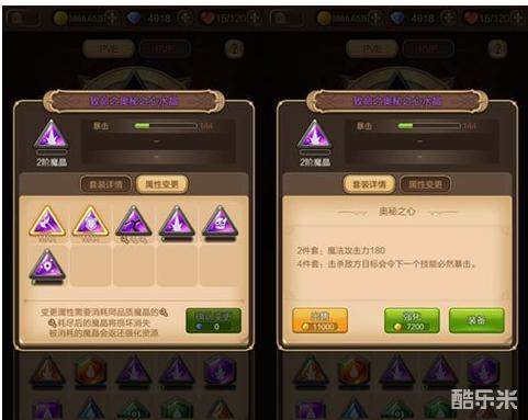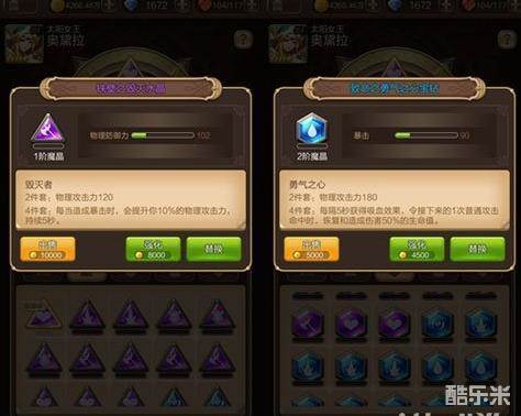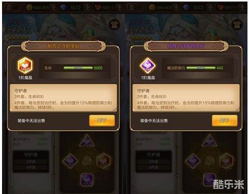 魔晶系统在英雄的套装界面中可以查看,每位英雄可以镶嵌四颗不同位置的魔晶,分别为水晶、宝钻、神石和符文石四种。而魔晶之间还分为包括“守护者”、“毁灭者”和“博学者”在内的12种套装。
