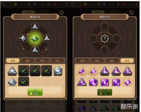 在品质上,魔晶的主属性随着白色、绿色、蓝色、紫色和橙色五个等级逐层提升,在之前的版本中,紫色和橙色的魔晶较难获取,新增的魔晶合成就免去了玩家这方面的烦恼。只需要四颗相同品质和阶级的魔晶就可以进行合成,根据合成材料的类型会得到高一个品阶的魔晶。
