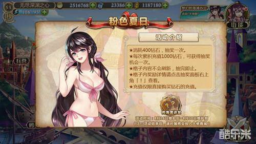 《姬魔恋战纪》最新活动粉色夏日,限时上线,只要收集8块刘备泳装碎片,便可合成一件刘备泳装,将泳装赠送给对应战姬,就可以触发时装剧情----刘备的海滩办公。