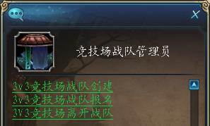活动开启时间内,3名玩家组成队伍后,队长可前往成都(294,316)、成都(283、316)NPC“竞技场战队管理员”处,选择“3V3竞技场战队创建”,小队3名成员全部完成确认后,战队创建完成。