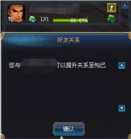在亲密度达到挚友1级66.6%时会出现好友关系可提升至知己的提示,当点击提示后会弹出提示框如下图所示: