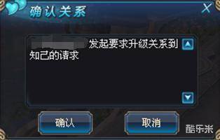 当队伍中申请人向另一人发送提升好友关系至知己关系的申请时,弹出对话框如下图所示: